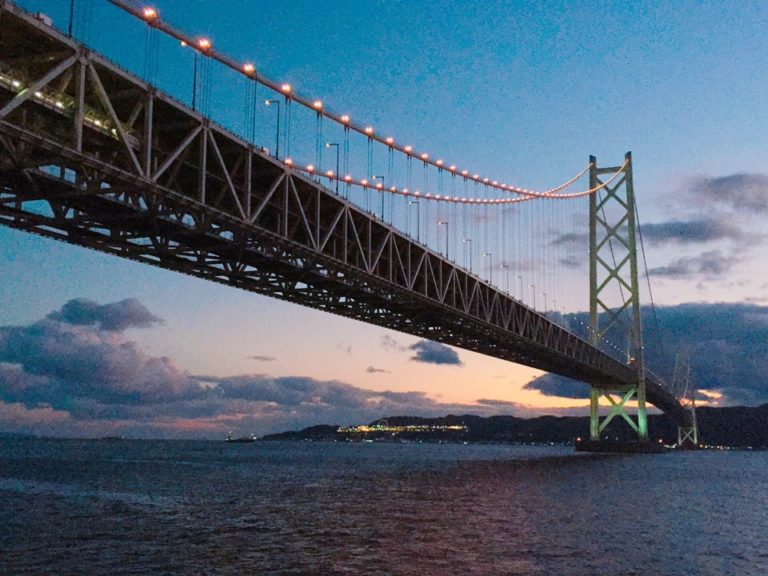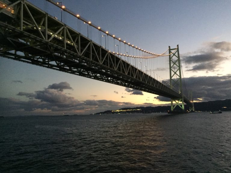 本州から淡路島への明石海峡大橋。