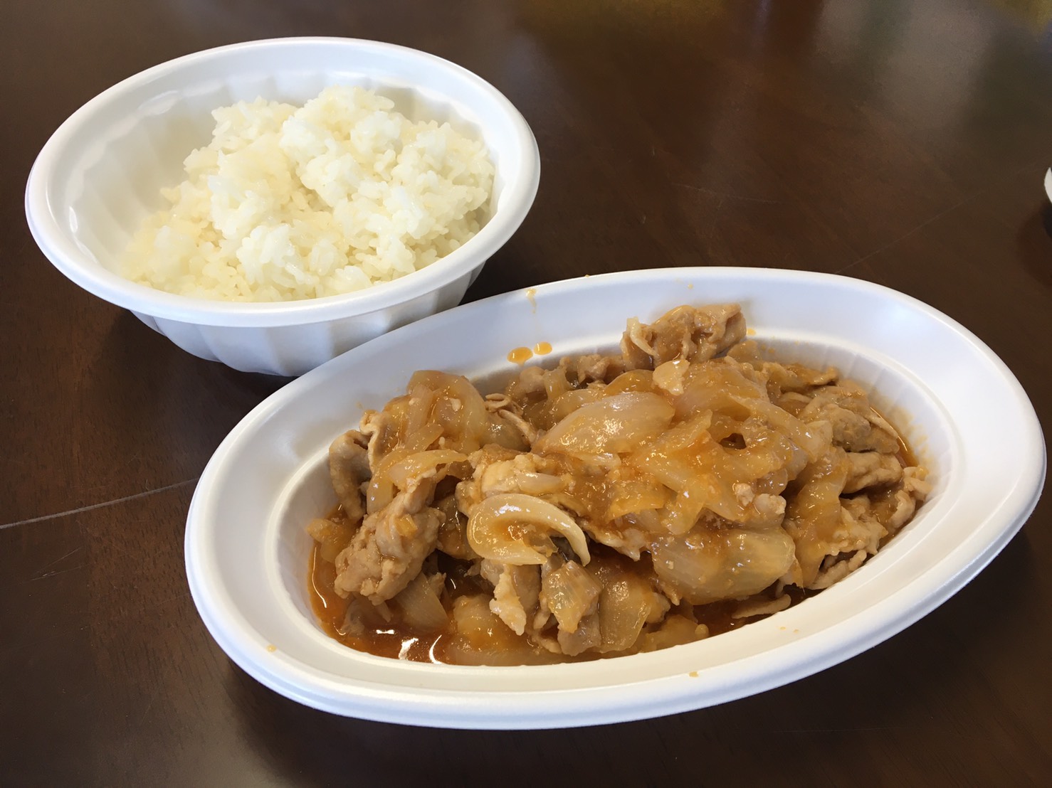 ラムーの豚ロースコマ切れ82円/g、あとキンリュー生姜焼きのタレで280円